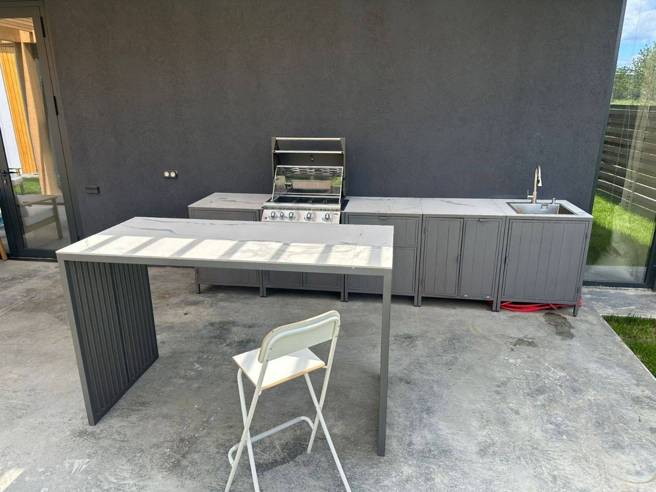 Модульная уличная кухня с грилем (серый фасад)