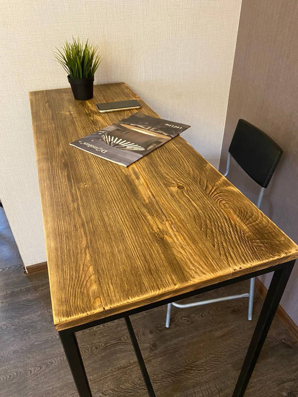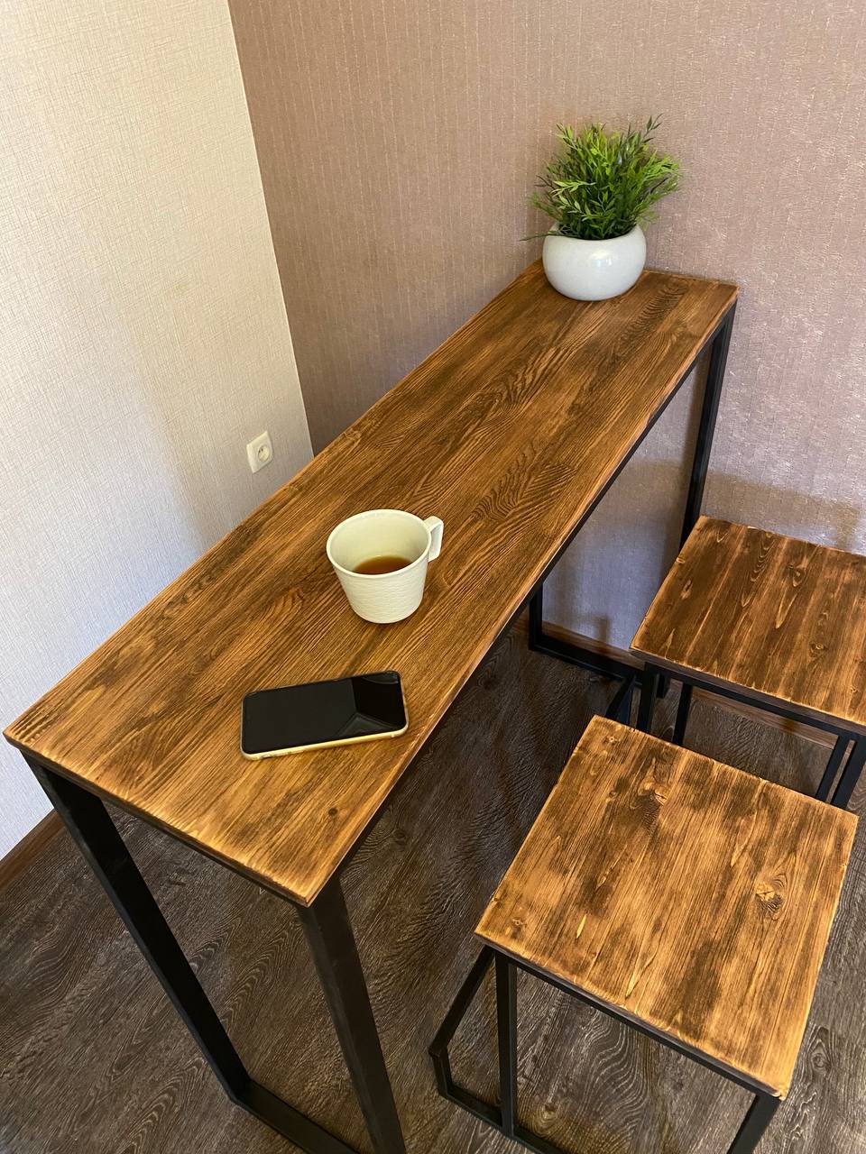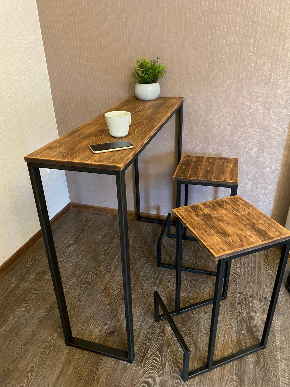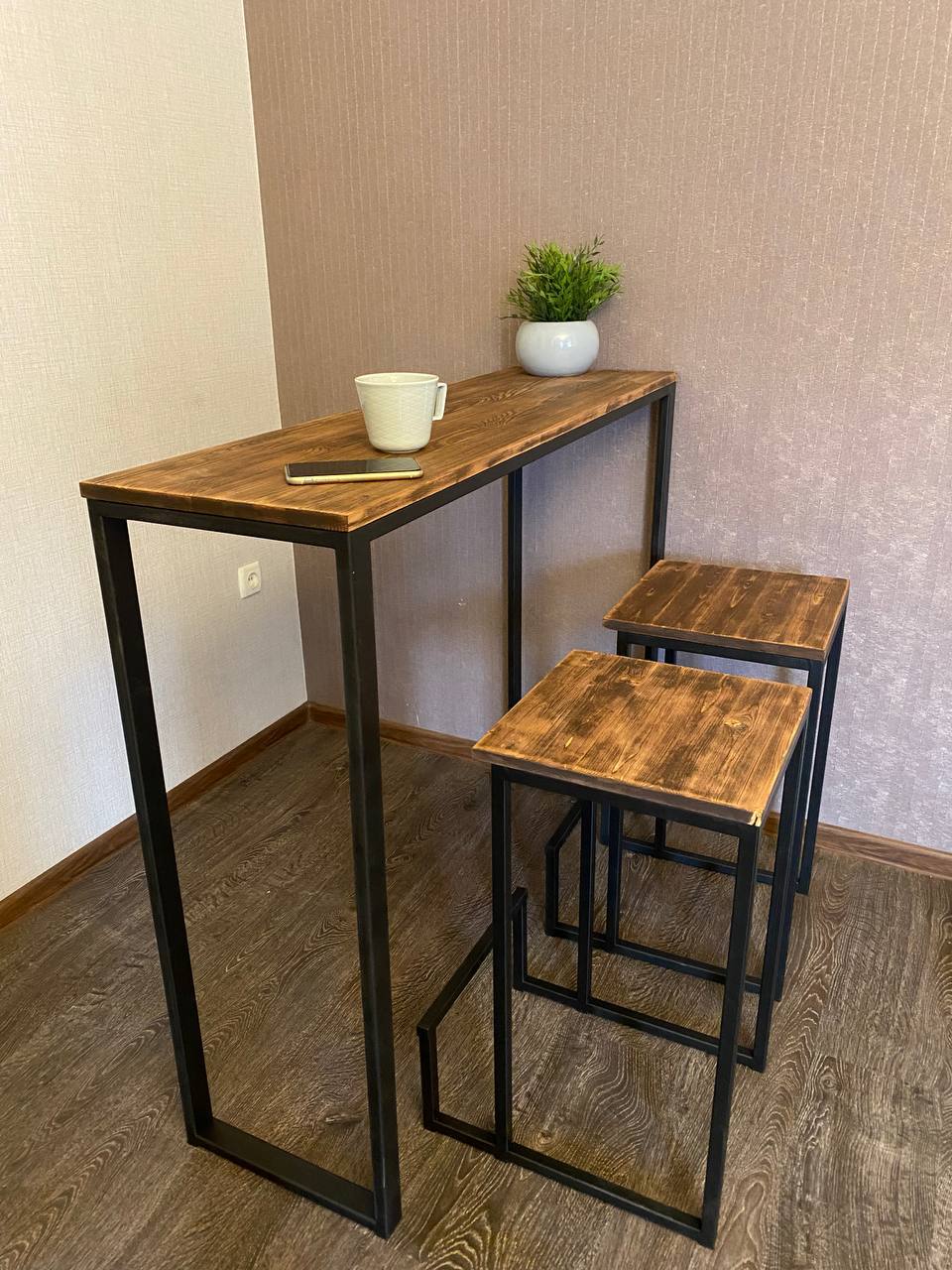Барный стол с табуретами (дерево, металл)