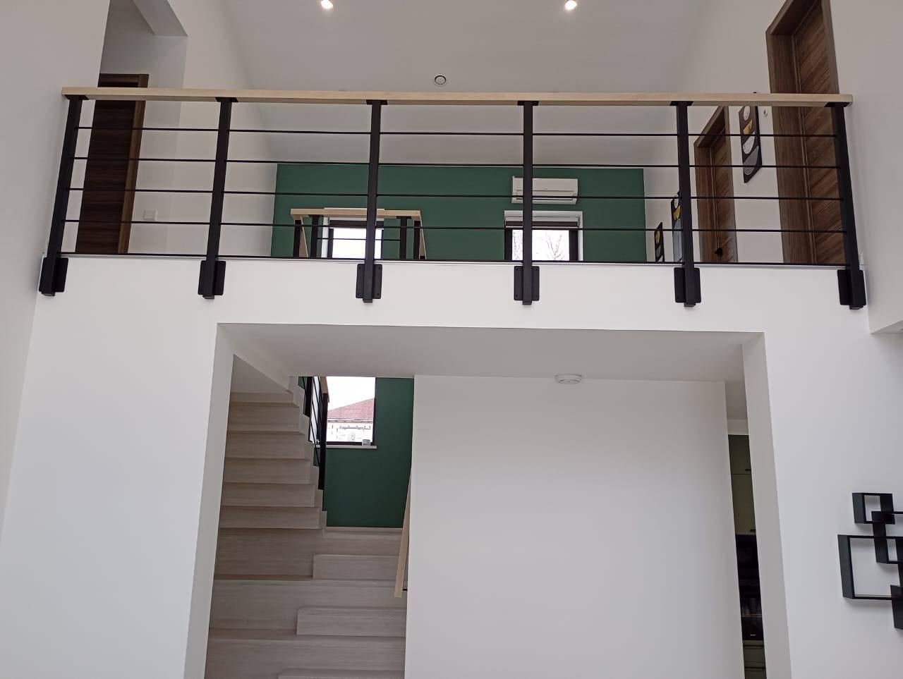 Каркас выполнен из металла, отделка подбирается под интерьер. Проектируем под ваш проем и высоту, соблюдаем требования безопасности.