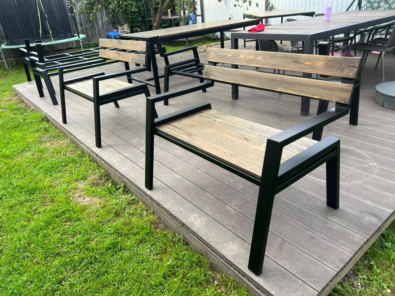 Каркас выполнен из стального профиля, окраска — порошковая для уличной эксплуатации. Размеры и комплектацию согласуем под вашу террасу или участок.