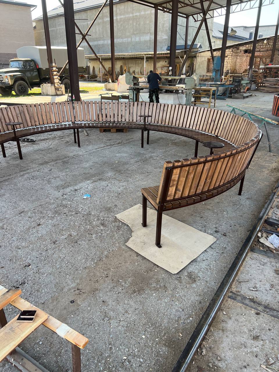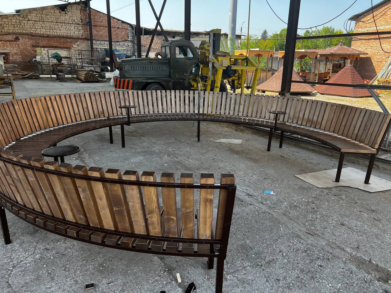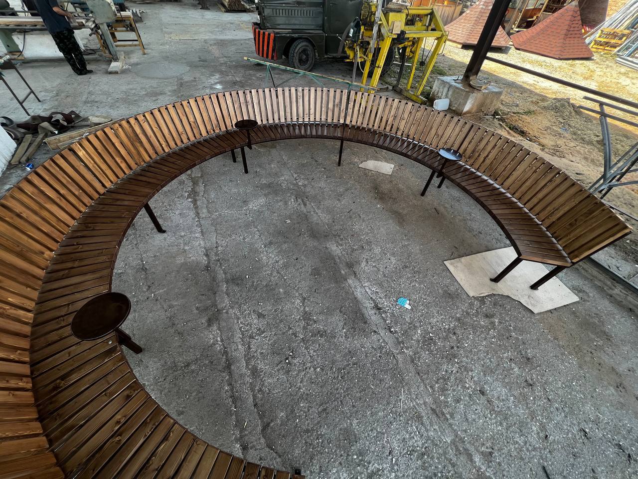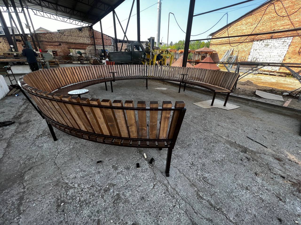 Круговая скамья с мини-столиками
