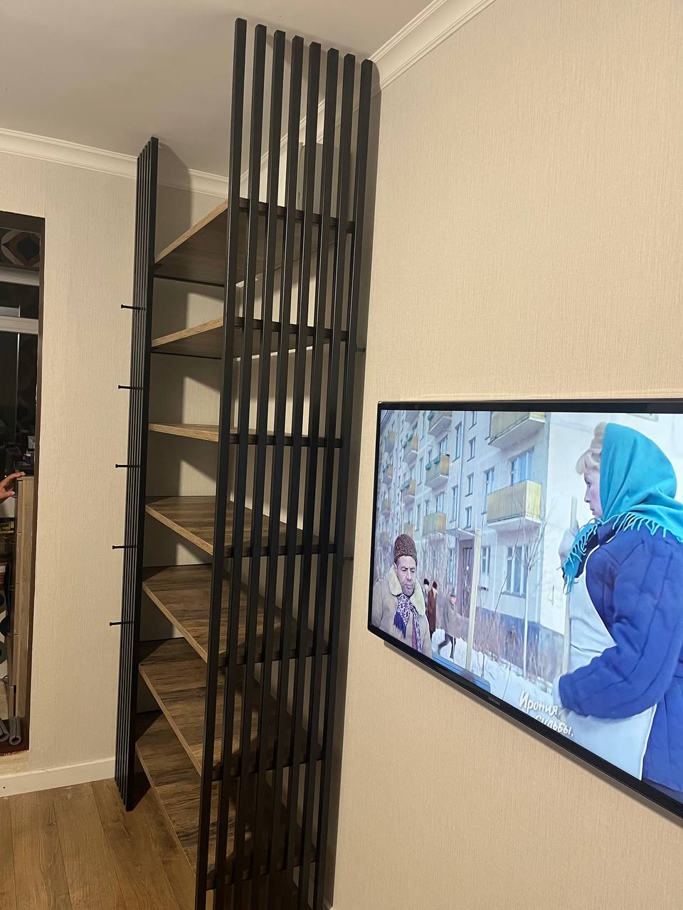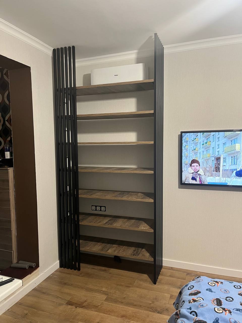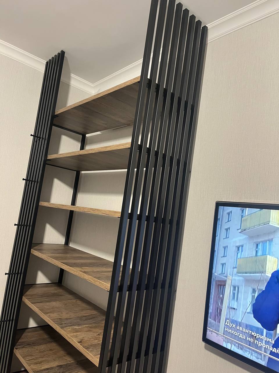 Стеллаж-перегородка с рейками (черный металл)