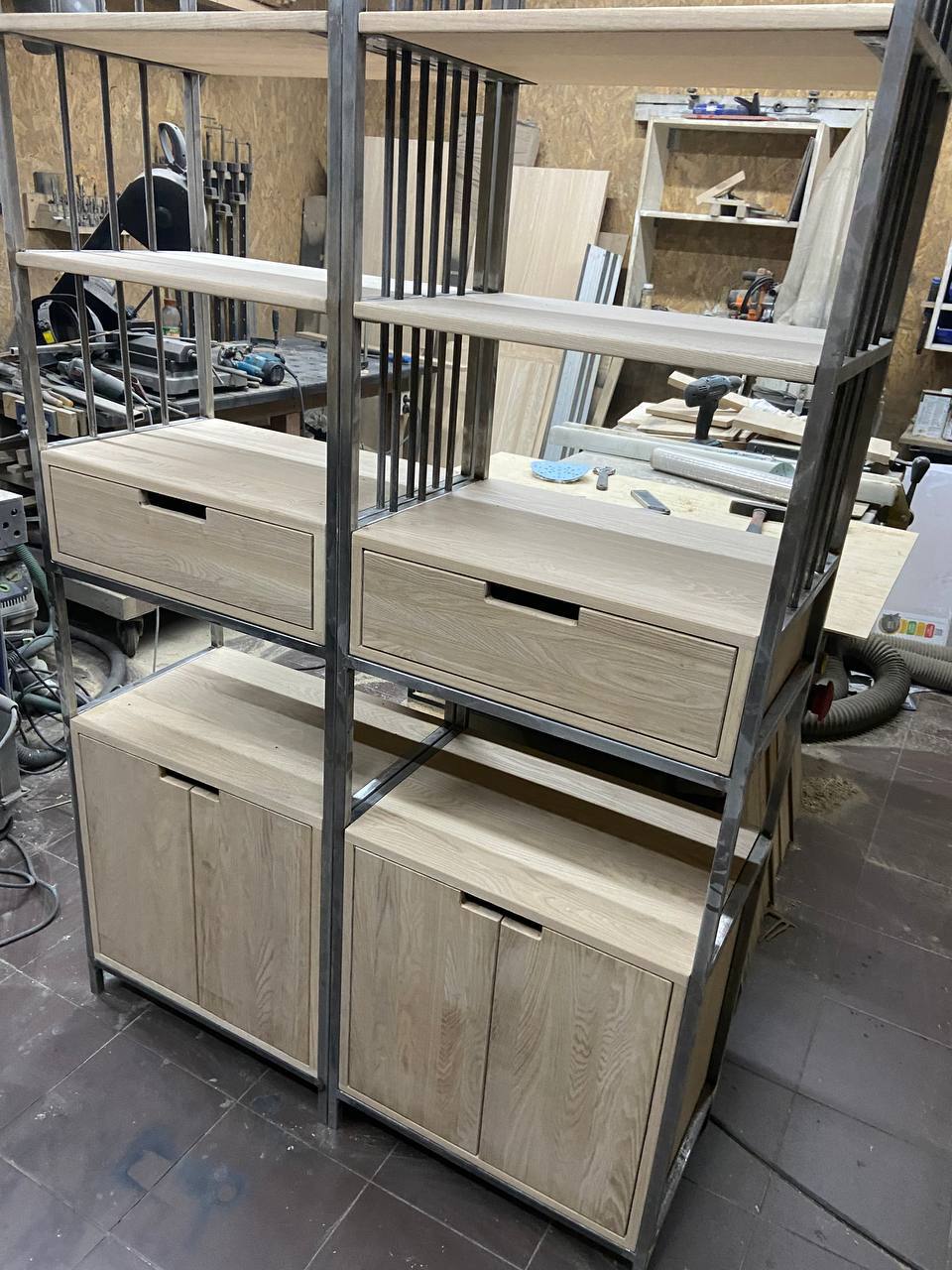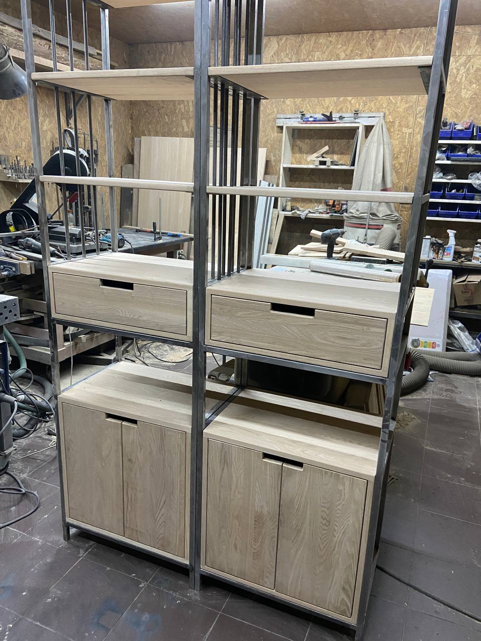 Гардеробная система (лофт, дуб, черный каркас)