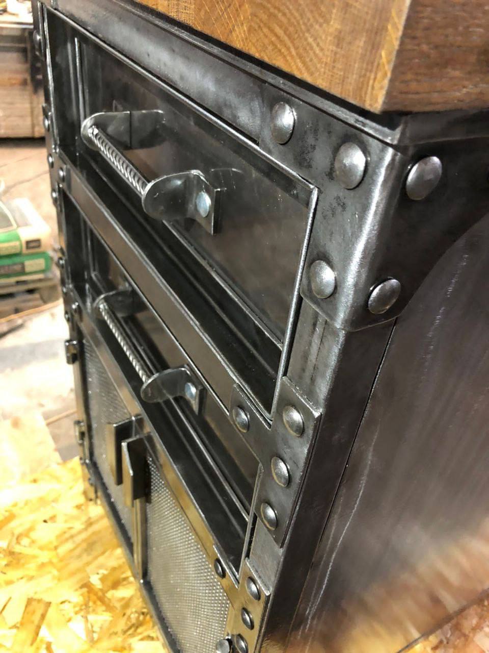 Индустриальная тумба с ящиками и сетчатыми фасадами