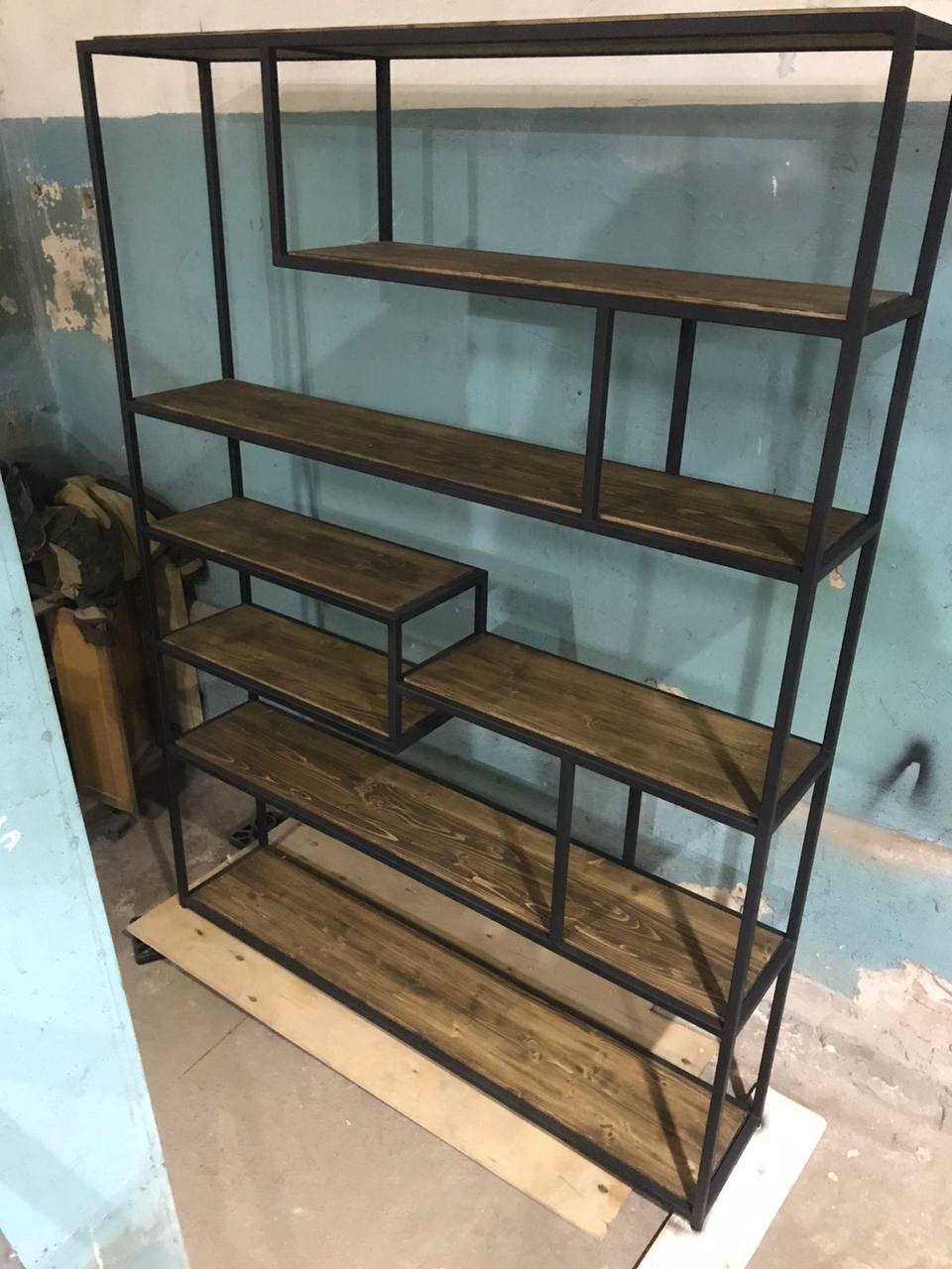 Лофт-стеллаж из металла и дерева