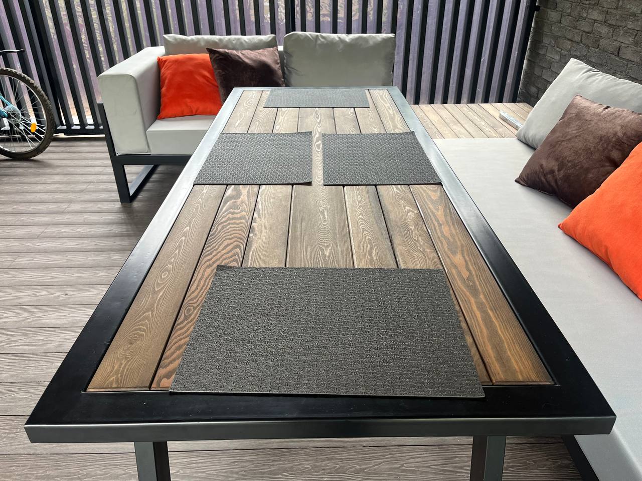 Каркас выполнен из стального профиля, окраска — порошковая для уличной эксплуатации. Размеры и комплектацию согласуем под вашу террасу или участок.