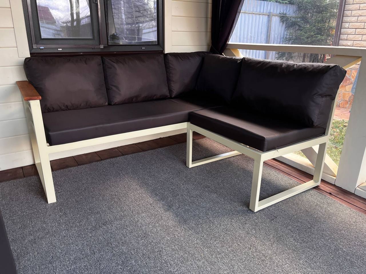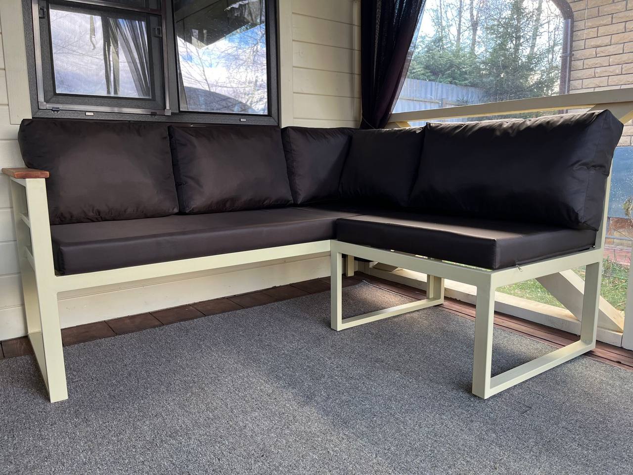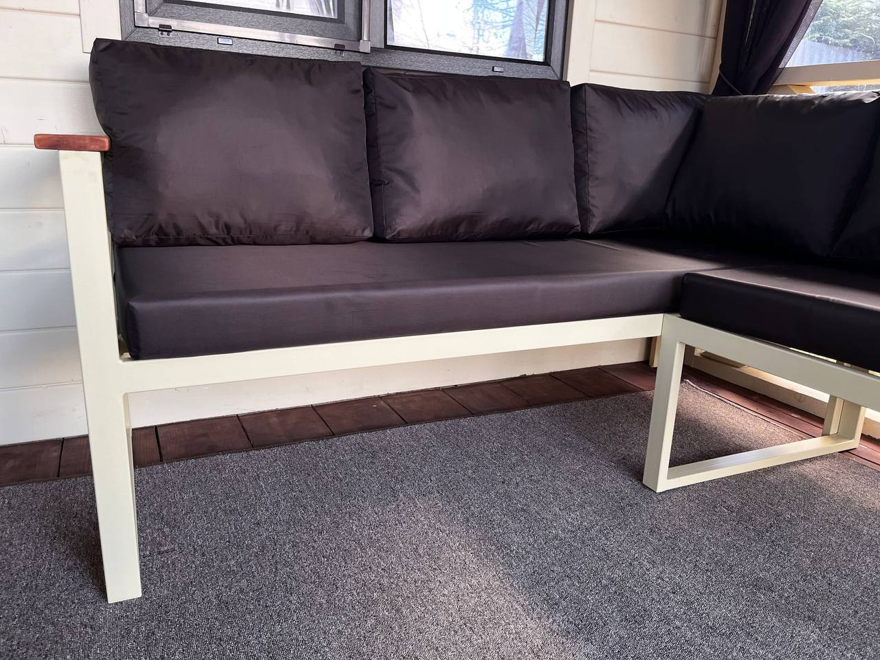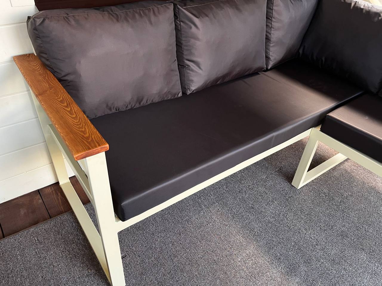 Уличный угловой диван Loft с деревянными подлокотниками