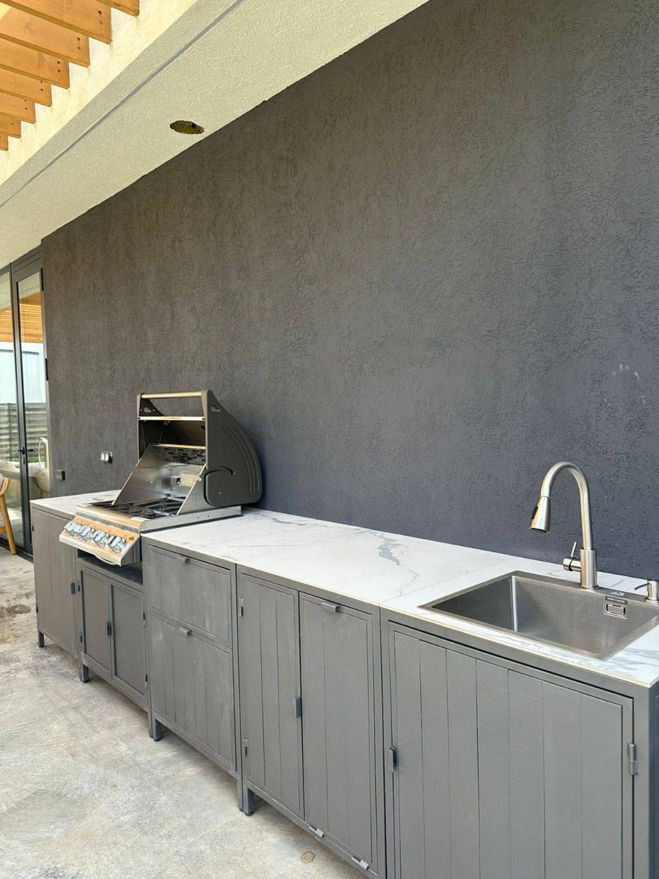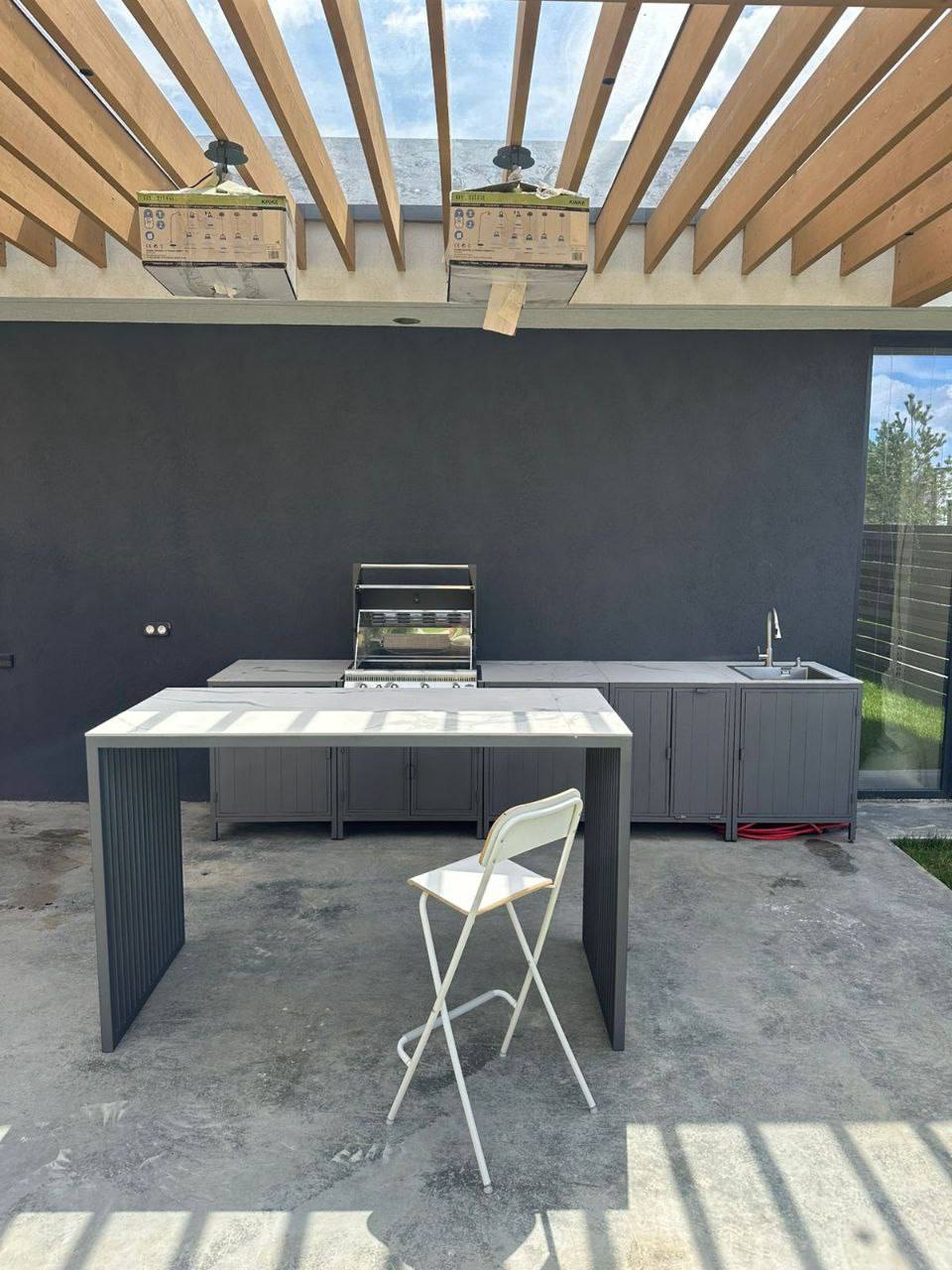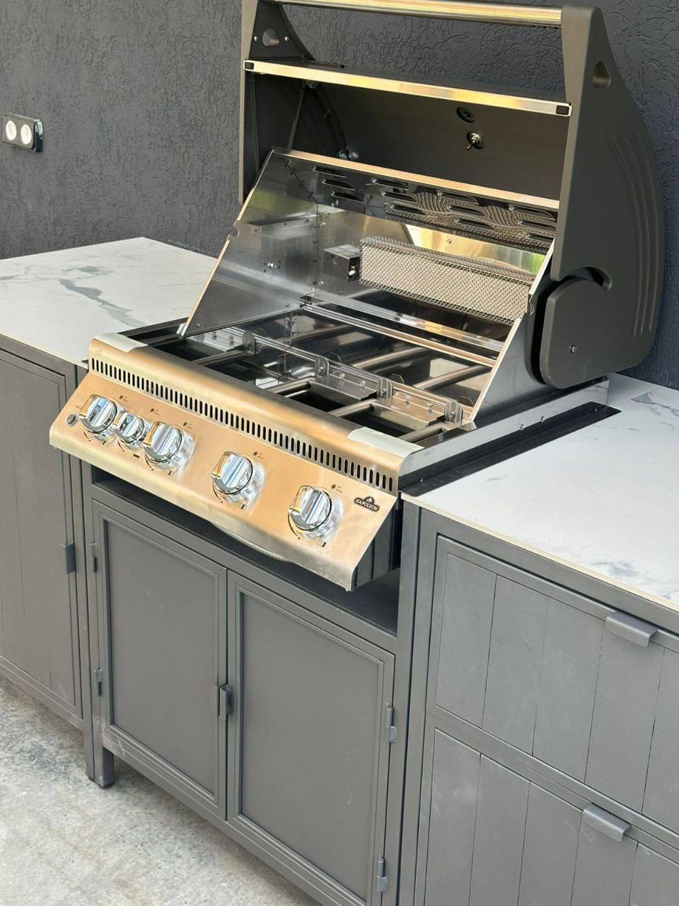 Модульная уличная кухня с грилем (серый фасад)