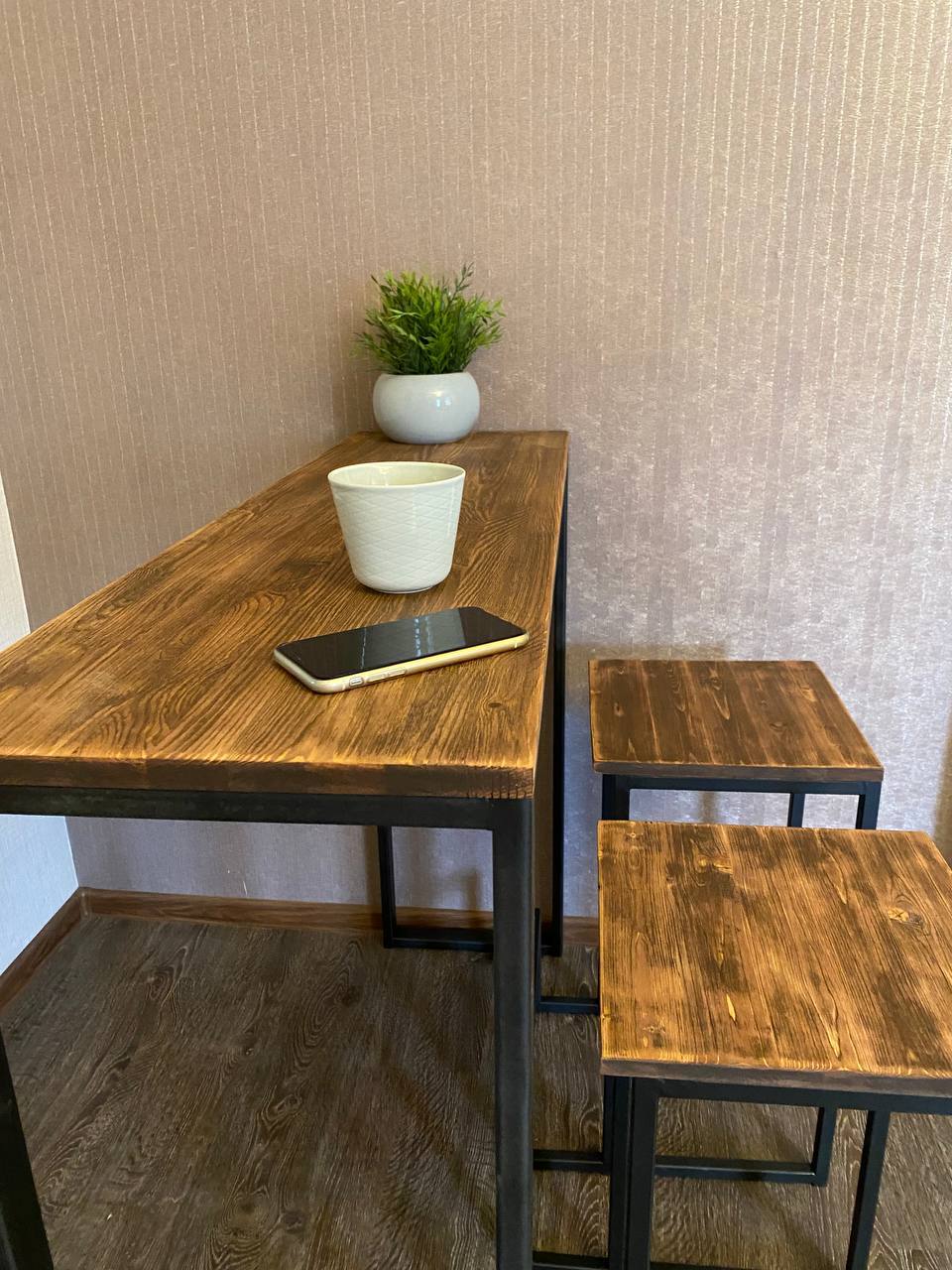 Барный стол с табуретами (дерево, металл)