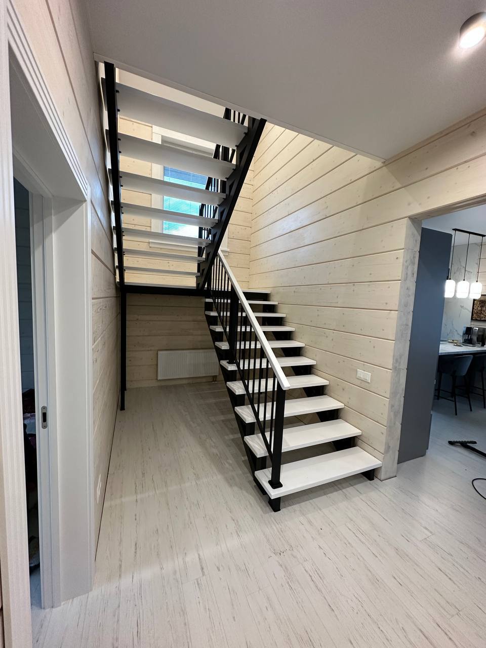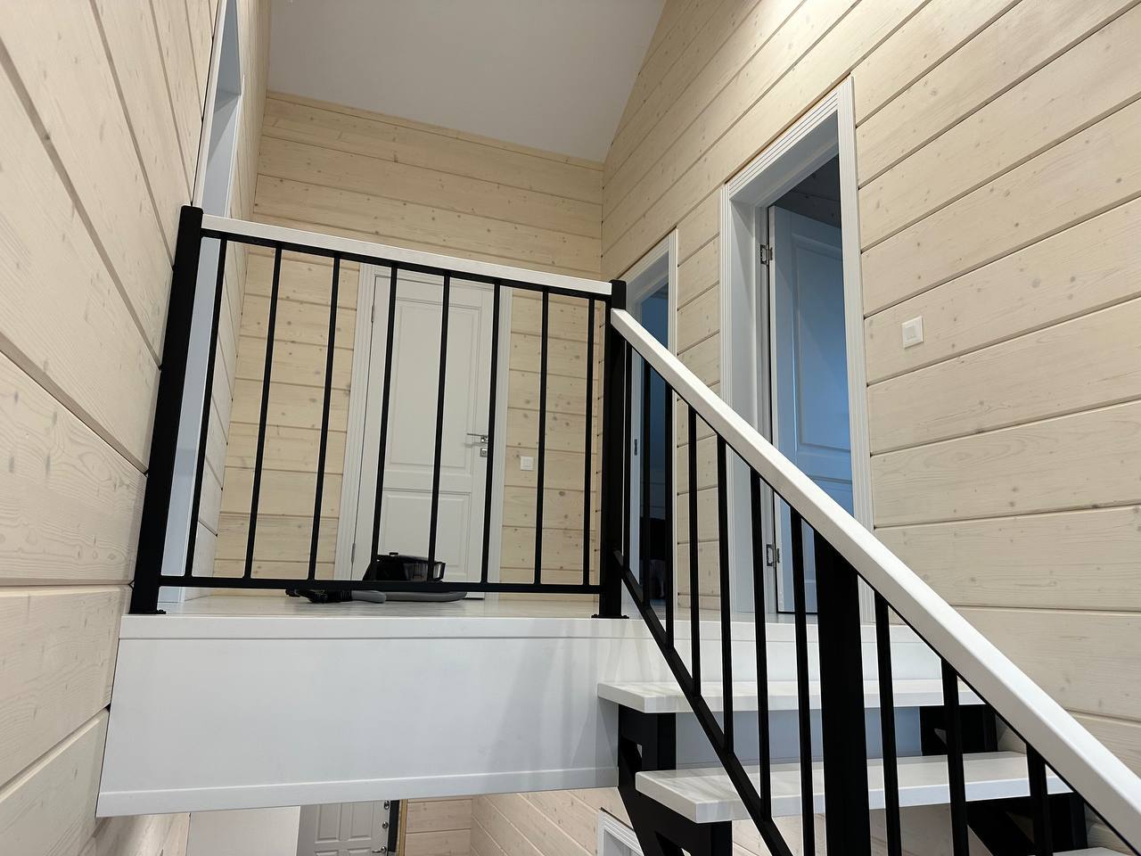 Каркас выполнен из металла, отделка подбирается под интерьер. Проектируем под ваш проем и высоту, соблюдаем требования безопасности.