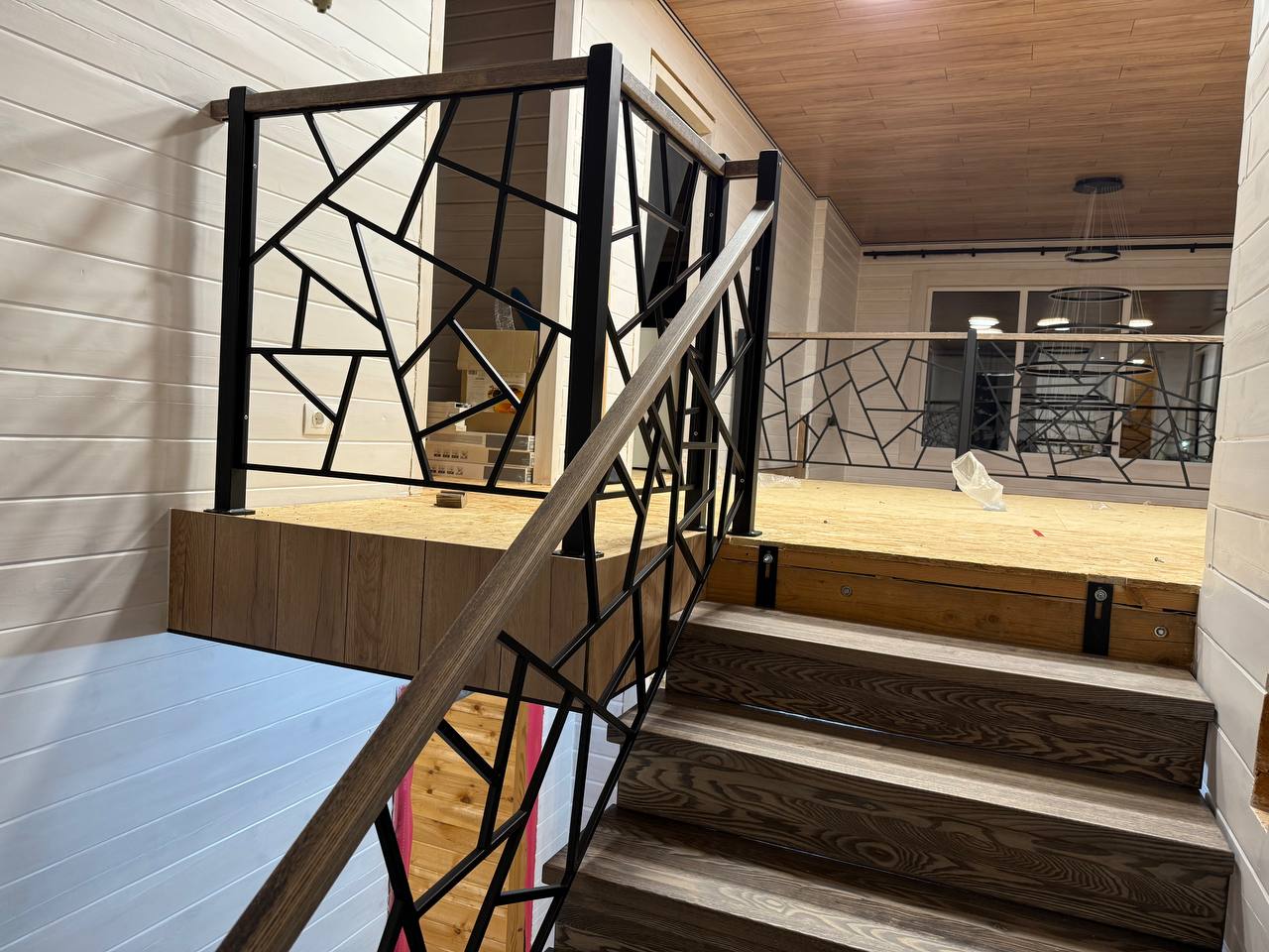Каркас выполнен из металла, отделка подбирается под интерьер. Проектируем под ваш проем и высоту, соблюдаем требования безопасности.