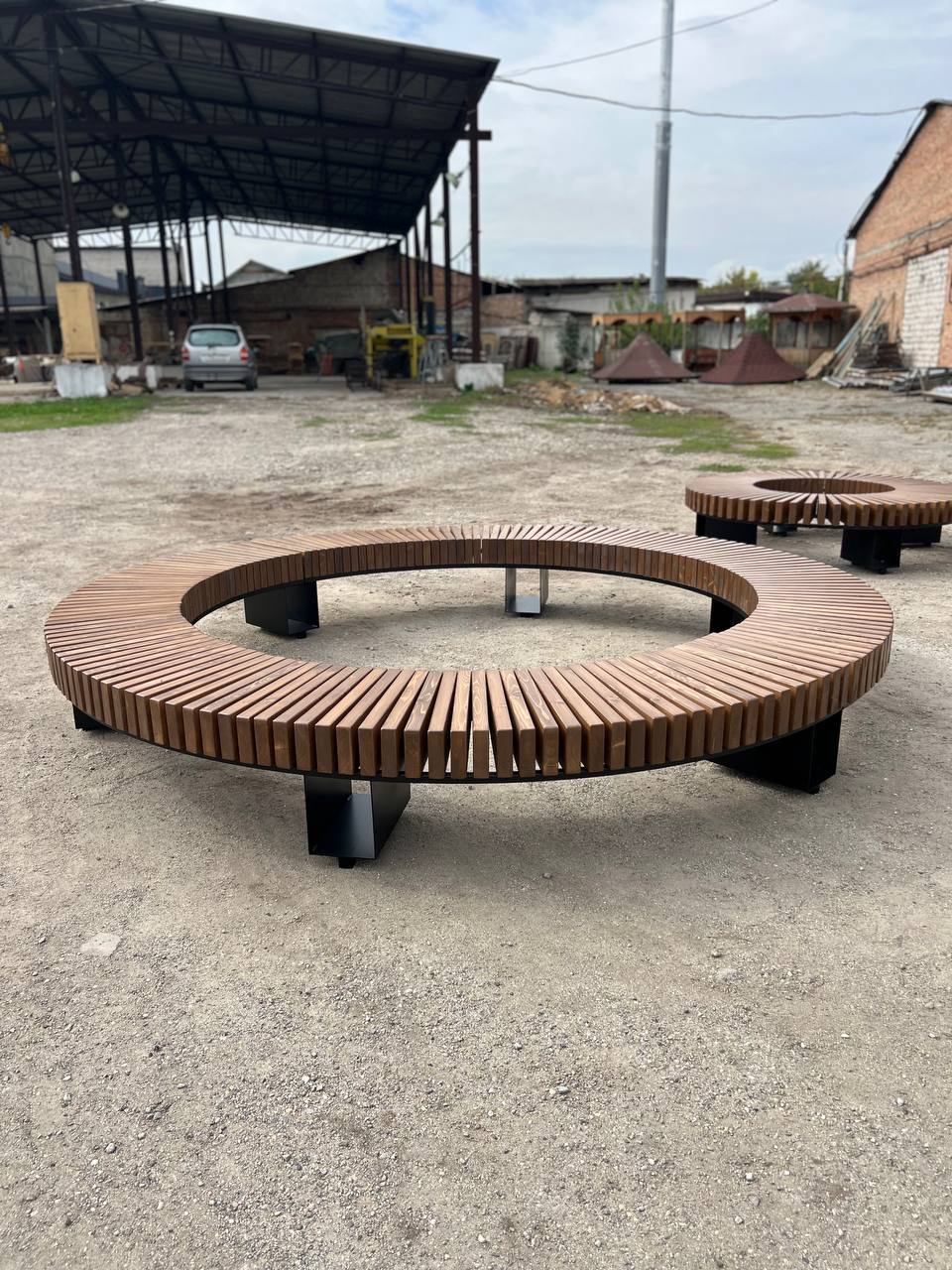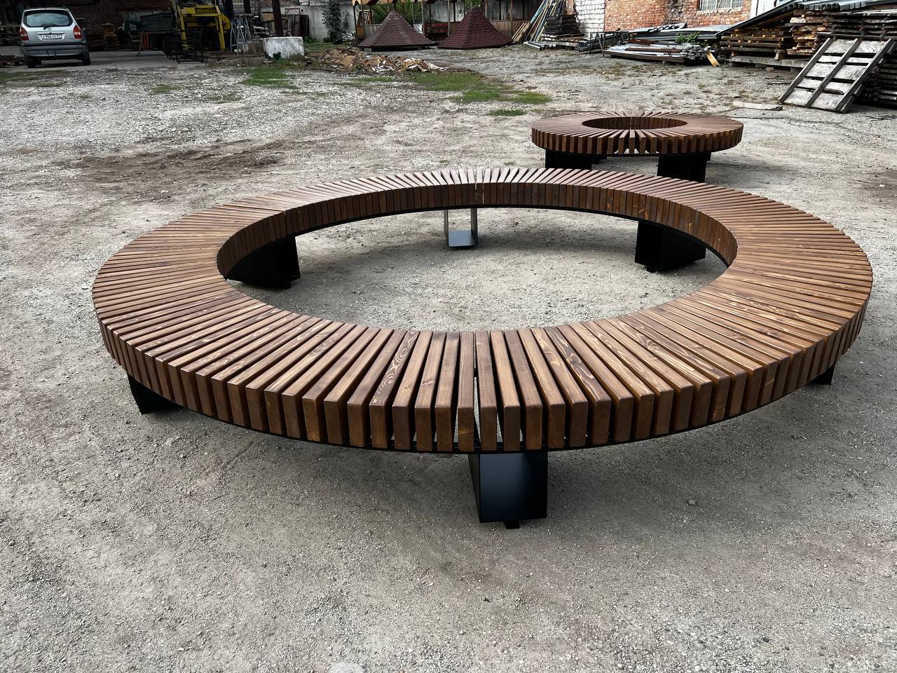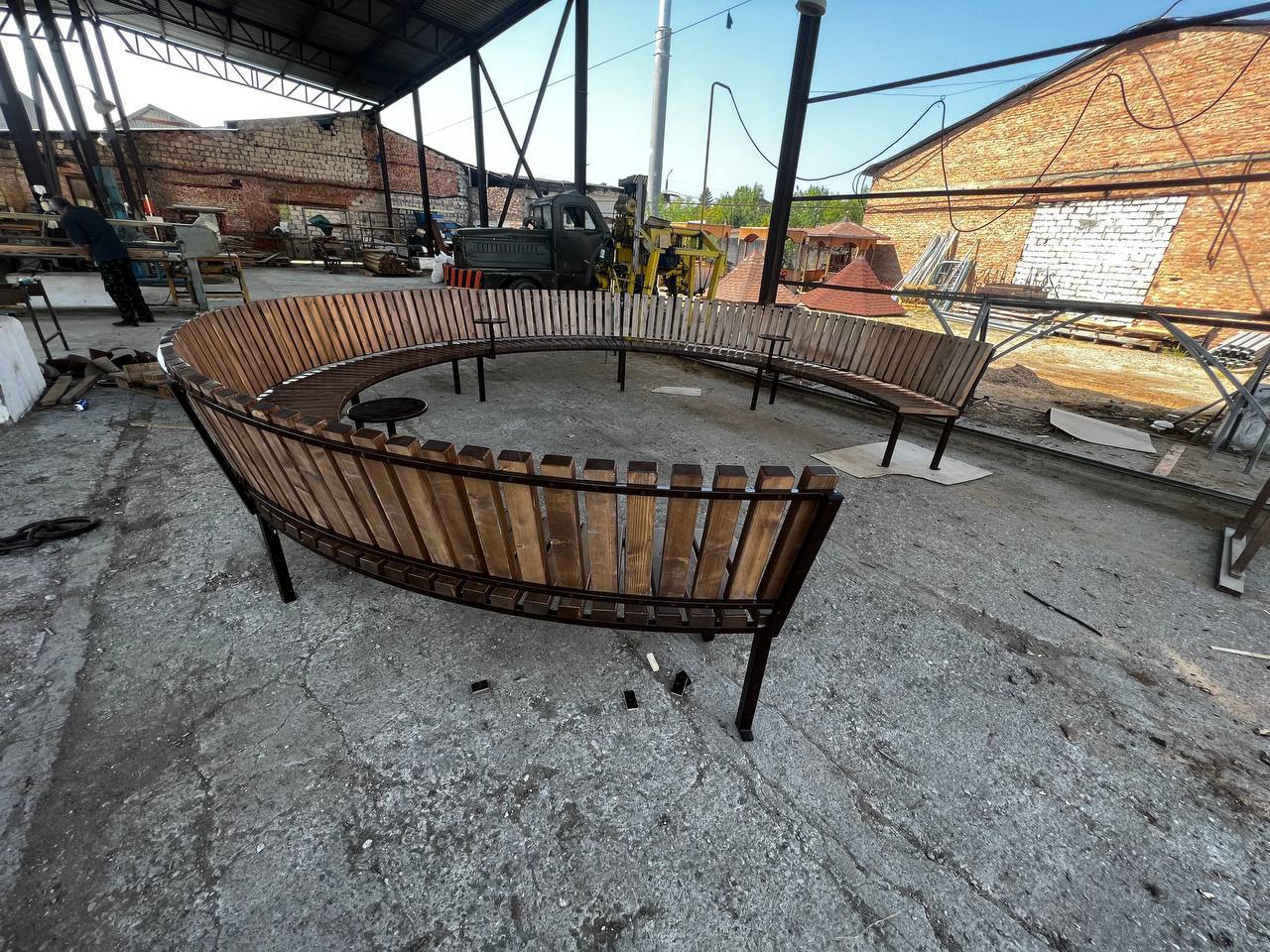 Круговая скамья с мини-столиками