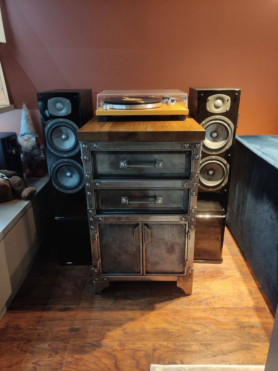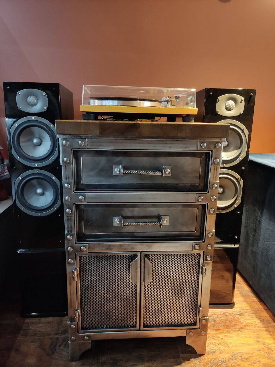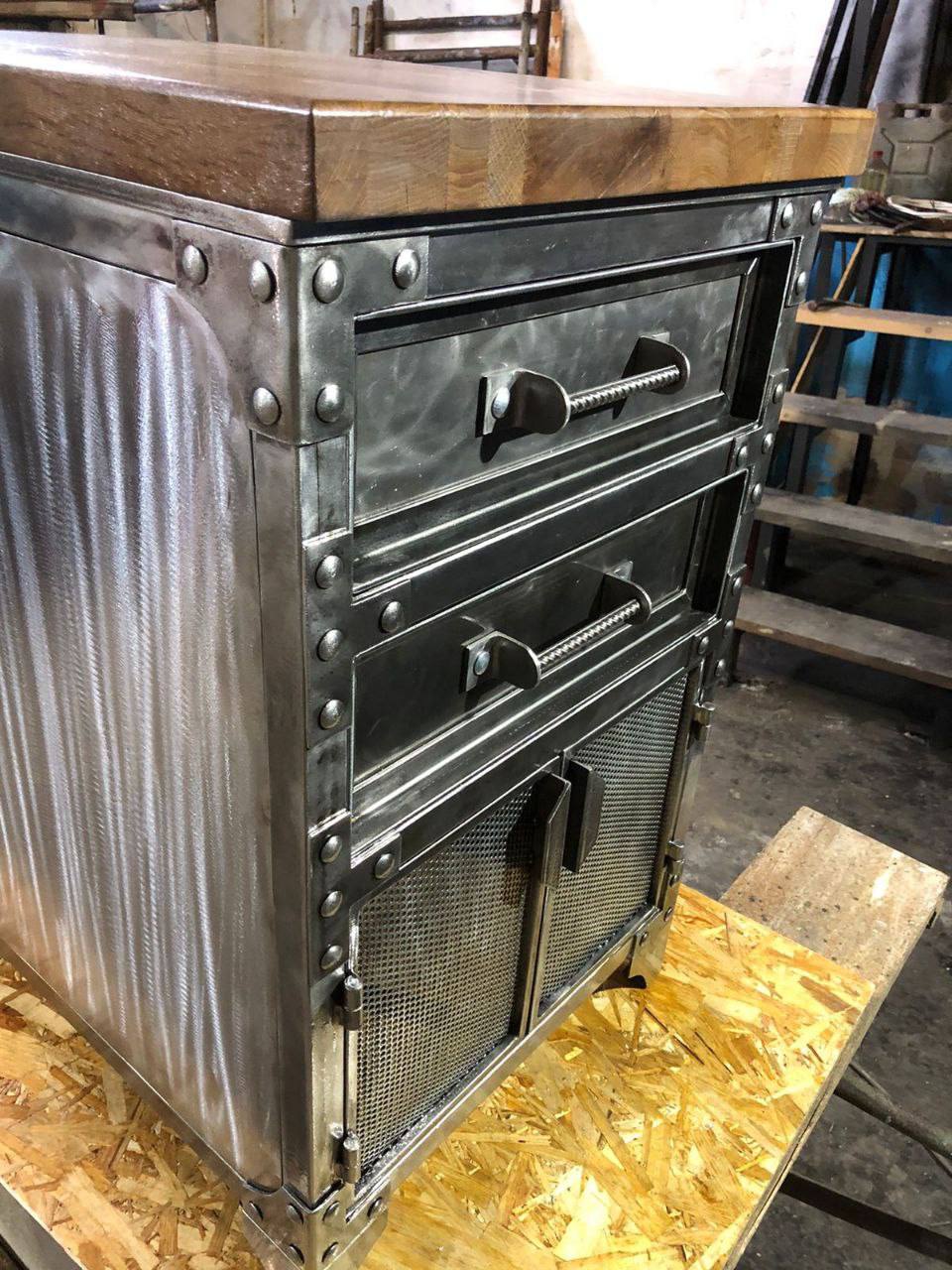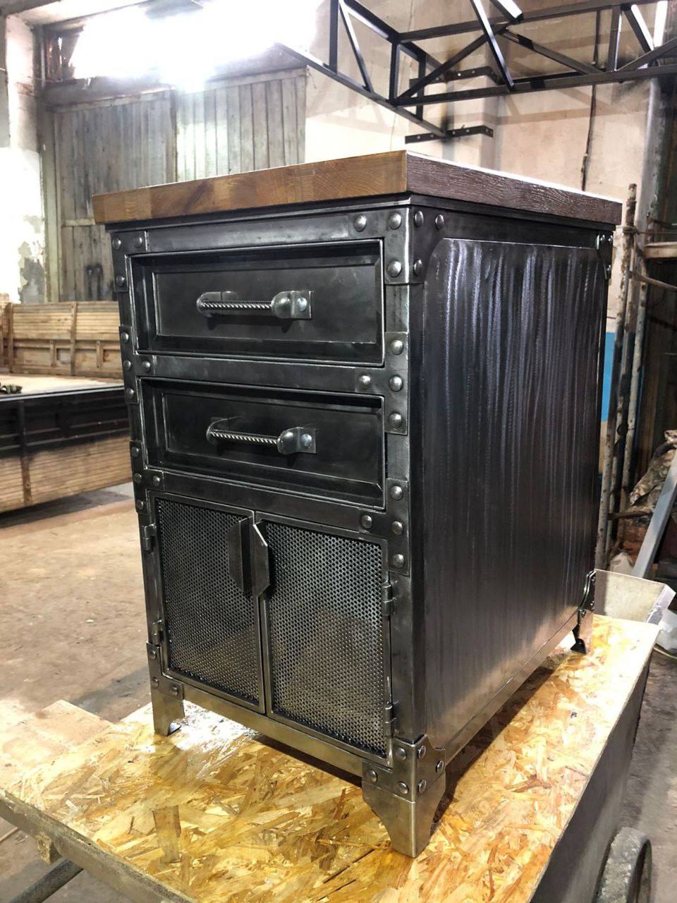 Индустриальная тумба с ящиками и сетчатыми фасадами