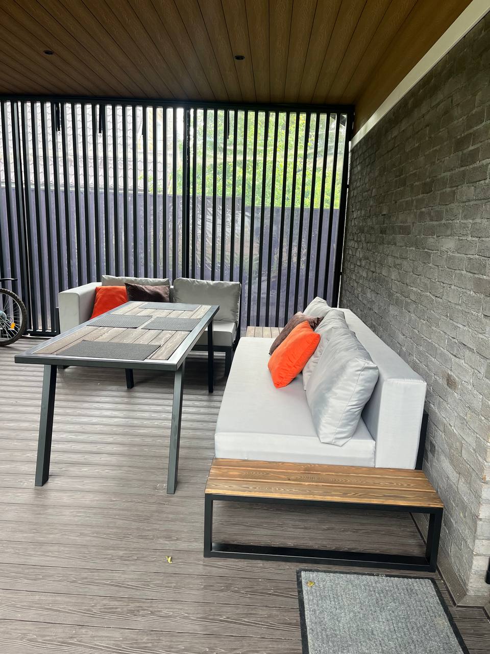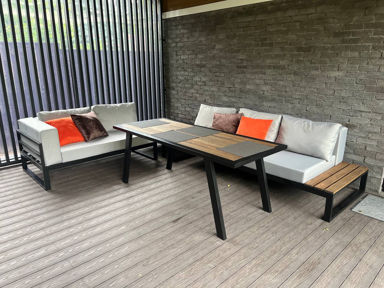 Каркас выполнен из стального профиля, окраска — порошковая для уличной эксплуатации. Размеры и комплектацию согласуем под вашу террасу или участок.